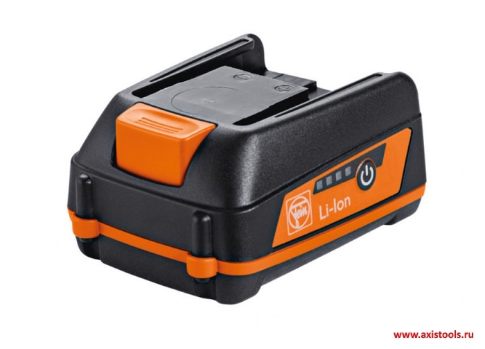 Литийионный аккумулятор с индикацией уровня заряда и технологией защиты элементов FEIN SafetyCell Technology.