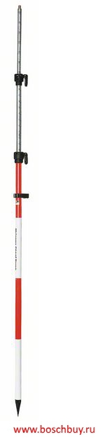Высота измерения регулируется от 150 до 360 см. Три секции. Внешний диаметр внизу 32 мм, вверху 19,1 мм. Тип зажима Quick-LokTM, с регулировкой по высоте Вес 2 кг, шкала в метрах, со встроенным сферическим уровнем.