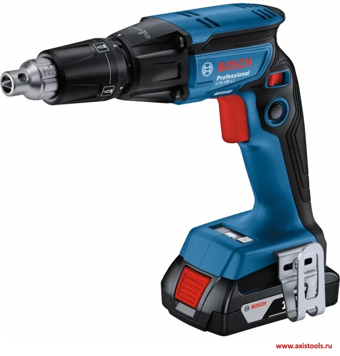 Шуруповерт работает от аккумуляторов Bosch 18 В, что гарантирует мобильность и удобство использования на объекте.