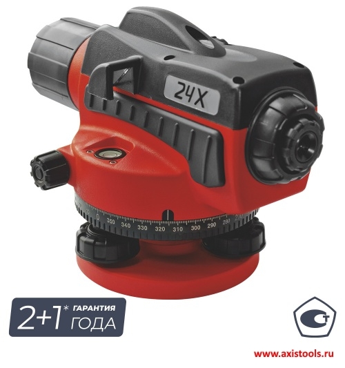 Нивелир обладает 24-кратным увеличением зрительной трубы с просветленной оптикой, что значительно улучшает видимость и облегчает наведение на удаленные объекты.