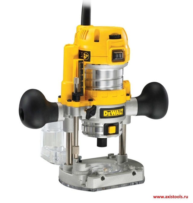 Алюминиевый корпус может быть зафиксирован на специальной платформе (приобретается дополнительно), увеличивая многосторонность применения двуручного фрезера Dewalt D26203;