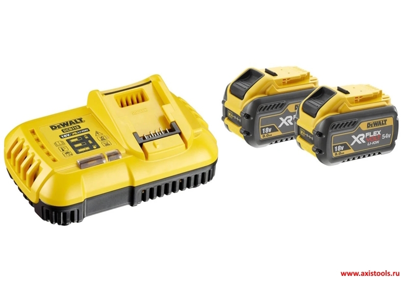 Набор из зарядного устройства DCB118, совместимого с с аккумуляторными платформами DeWALT XR 18 Вольт и FLEXVOLT 54 Вольта, и аккумуляторными батареями DCB547 (18В, 9Ач / 54В, 3Ач) обеспечит эффективную непрерывную работу с аккумуляторным инструментом DEWALT.